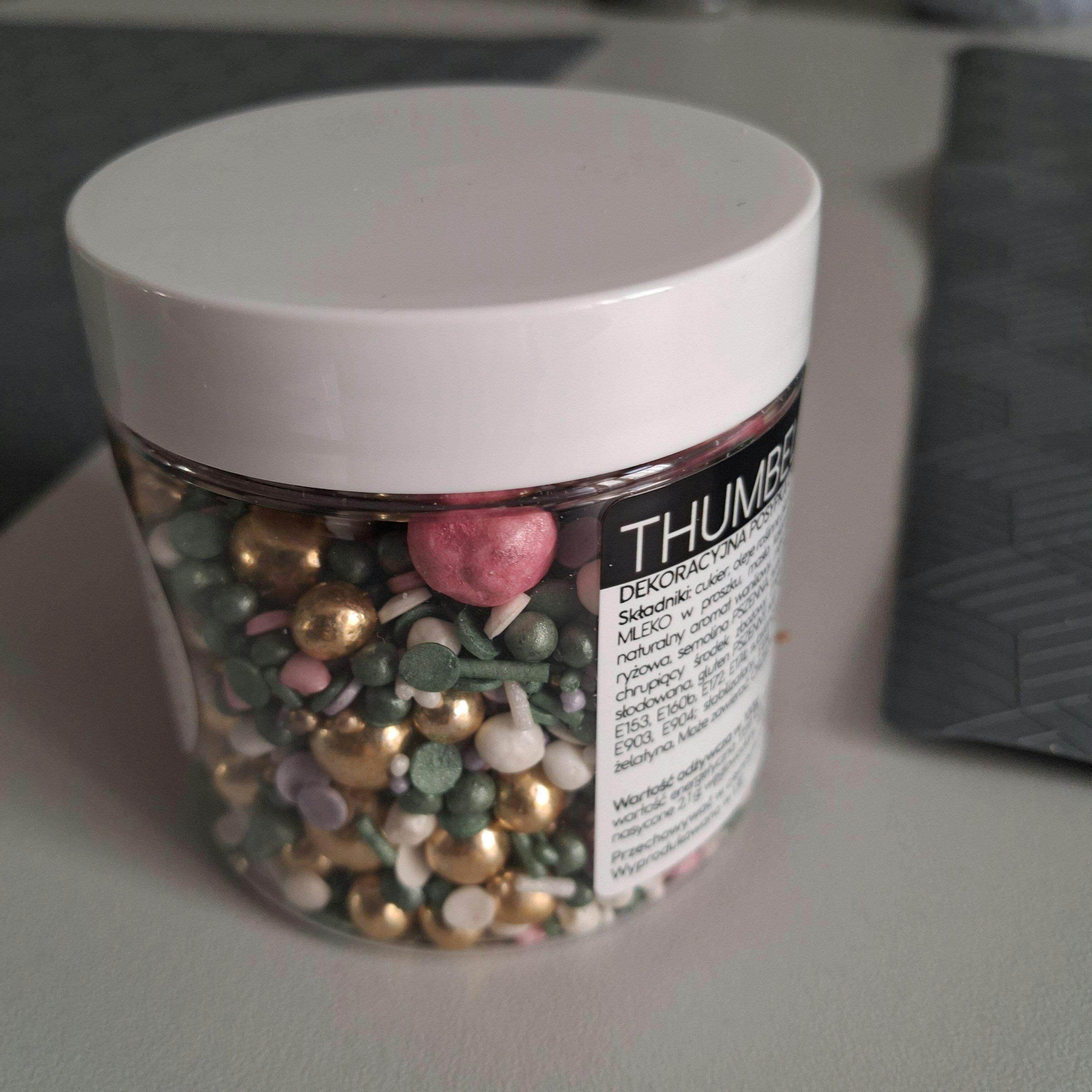 THUMBELINA to magiczna, bajkowa mieszanka w kwiatowych barwach, inspirowana światem Calineczki. Chłodna szałwiowa zieleń przełamana różem, fioletem i złotymi akcentami tworzy nietuzinkową, elegancką kompozycję. Drobne nonpareilsy i cukrowe perełki nadają jej uniwersalną strukturę, a złote detale dodają luksusowego wykończenia. Ta posypka to idealny wybór dla miłośników subtelnych, ale oryginalnych dekoracji.